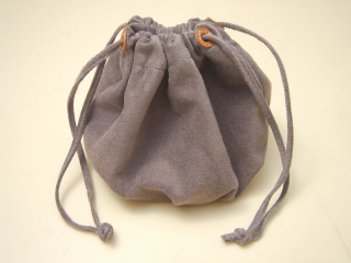 底部分にひだをとって、ふっくらと丸くなるように仕上げてある巾着型ポーチは、ちょっとしたときに便利です。
