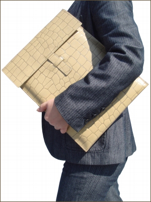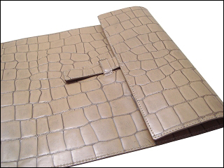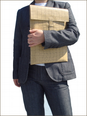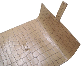 鞄の中から、このワニの型押がされたドキュメントケースを出して中身を取り出した瞬間に、注目が浴びられるようなシーンを想定して製作しました。