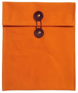 A4の封筒やA4クリアファイルが入ります。 鞄の中に入れておく大事な書類や、客先に提出するための書類等の収納に重宝します。 折返しを閉じたあとにヒモで巻き付ける部分は、丸型の革を使用しております。 使わない時は、帆布ごとくるくる巻いておけば邪魔にもなりません。