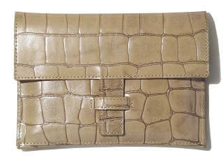 モカ色の牛革にワニの型押(艶あり) 裏地はアイボリー
