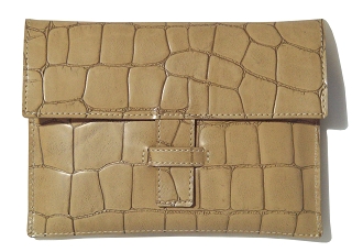 クリーム色の牛革にワニの型押(艶なし)