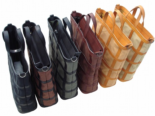 BKG-55の新作紹介に伴い、パターンの違ったバッグをエントリーしました。黒、こげ茶、うす茶は定番品として取り扱いますが、その他のパターンは今回限りの一点物となります。
