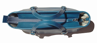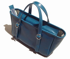 ターコイズブルー色のカーフ革(落ち着いた色です)
