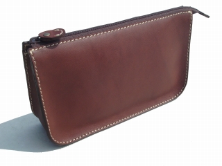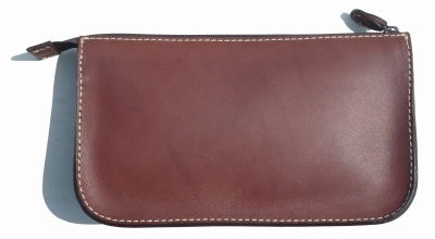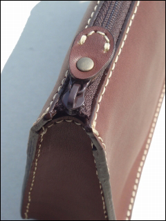 こげ茶のヌメ革×裏地 こげ茶×ステッチ アイボリー
