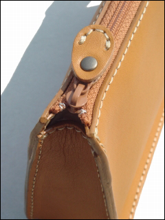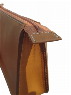 うす茶のヌメ革×裏地 うす茶×ステッチ アイボリー