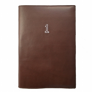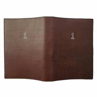 ナンバー「1」のステッチでワンポイント刺繍を施した単行本サイズの革製ブックカバーです。単行本サイズのブックカバーは私自身なかなか出会ったことがありません。なのでつくりました。