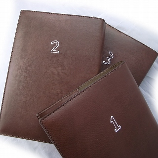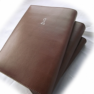 革製のカバー、意外とゴージャスで品良く仕上がりました。しおりとしおりポケット付きになっています。