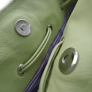 巾着にも変化する手提げ鞄をつくりました。鞄本体を絞らなければ、A4サイズの雑誌やノートが収納可能です。口元の留め金具にはマグネットホックを使用しています。
