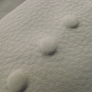 3つの革巻きボタンホックはアクセント。押しても何もでてきません。