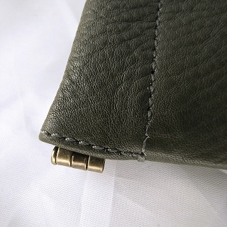 3つの革巻きボタンホックはアクセント。押しても何もでてきません。