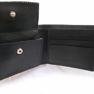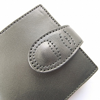 BKG-28のコインポケット付財布と同じスタイルですが、二つ折りサイフの開き留めとして、アクセントとなる親指形状の留め具が付いています。