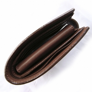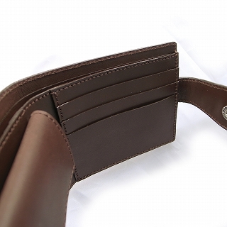 BKG-28のコインポケット付財布と同じスタイルですが、二つ折りサイフの開き留めとして、アクセントとなる親指形状の留め具が付いています。