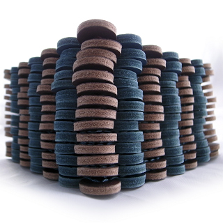 円の接点のみの接合ですので、コースター自身が動きを吸収し、変形や反りなどの防止に役立ってくれます。