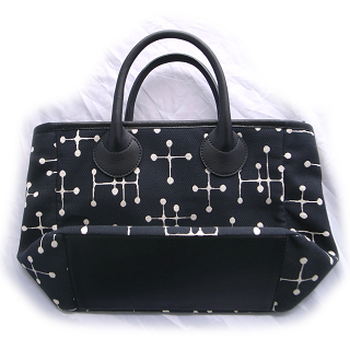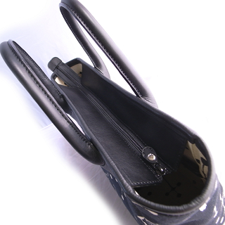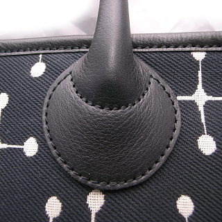 持ち手、底、ファスナー周り、パイピングは黒のヌメ革を使用しています。