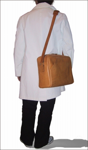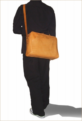 鞄本体の前面にポケットが付いていて、マガジンなどの収納に便利です。