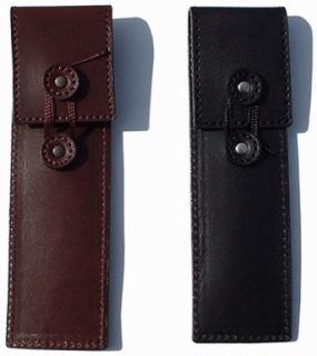 ペン類は2〜3本程度しか入りませんが、鞄の内部小物にこだわった一品です。 格好の良い万年筆やボールペンをさり気なく忍ばせてほしいです。 フタの止め方は、二つの丸ボタンにヒモを、クルクルっとかけていくタイプです。