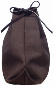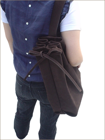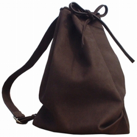 インナーに本体との紐付き小物入れがありますので、貴重品等の確保もできます。鞄の口の閉じ方は紐によって結んで絞める方法をとっています。