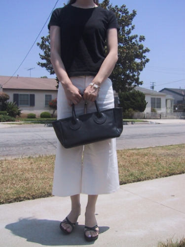 このサイズの割には、マチが結構ありますので、鞄の中身がすべて見通せて、非常に使いやすいです。 いろいろな着こなしに似合いそうですね。写真は実際の使用例として掲載しています(ちなみに撮影場所はロサンゼルスです!) 内側にはファスナーポケットが1つ、オープンポケットが2つ付いています。