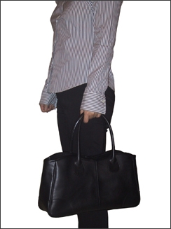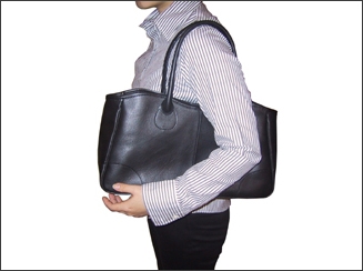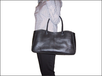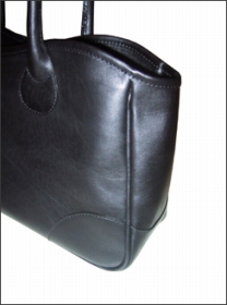 口の部分や切り替え部分に曲線を使用し、女性らしい形に仕上げ、また、肩掛けしたときにサイドからのスタイルが美しく見える様に、入口ラインの修正を重ね製作しました。