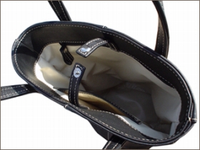 持ち手は15mm幅の平手で長さは30cm、内側は横20cm×深さ15cmのファスナーポケットが1つ、横14cm×深さ12cmのオープンポケットが1つの仕様になってます。