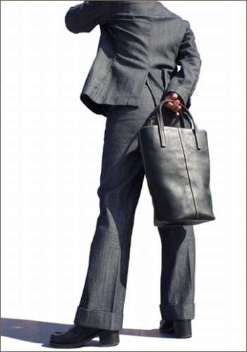 縦のラインを強調したバッグで、スマートに仕上がっています。