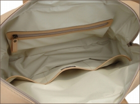 内側は片面にファスナーポケット1つ、もう片面は横並びにオープンポケットが3つ付いています。