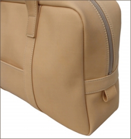 革のへりは折り込んで仕上げ、ソフトな雰囲気に仕上がっています。