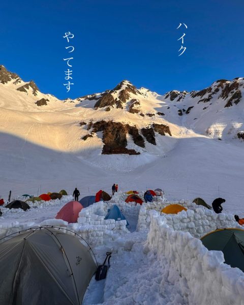 ②残雪から掘り起こされた北穂高小屋
