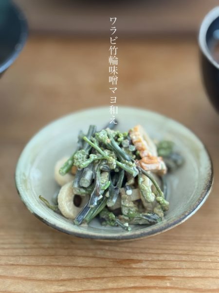 #ワラビ竹輪味噌マヨ和え